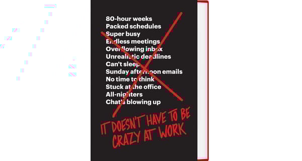 Vlak daarvoor hebben we It Doesn’t Have to be Crazy at Work van de mannen van Basecamp gelezen. Dit boek zegt dat je niet mee hoeft te gaan in de gekte van bijvoorbeeld 60-urige werkweken.