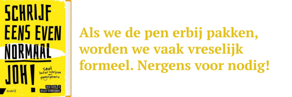 Als we de pen (of veel vaker het toetsenbord) erbij pakken, worden we vaak vreselijk formeel. Nergens voor nodig!